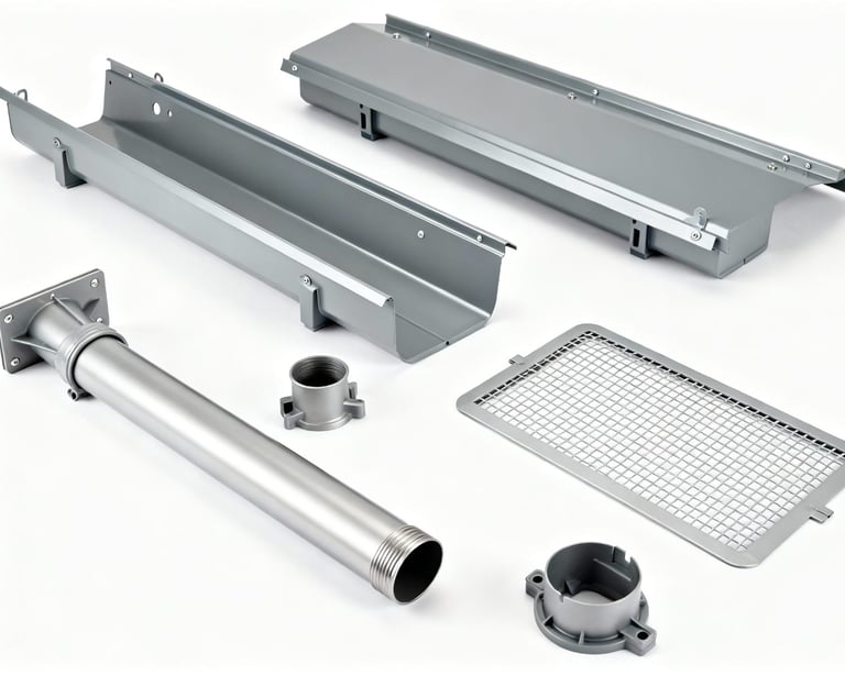 Downpipes/Spouts: For vertical channeling of water from the gutter to the ground or drainage system.